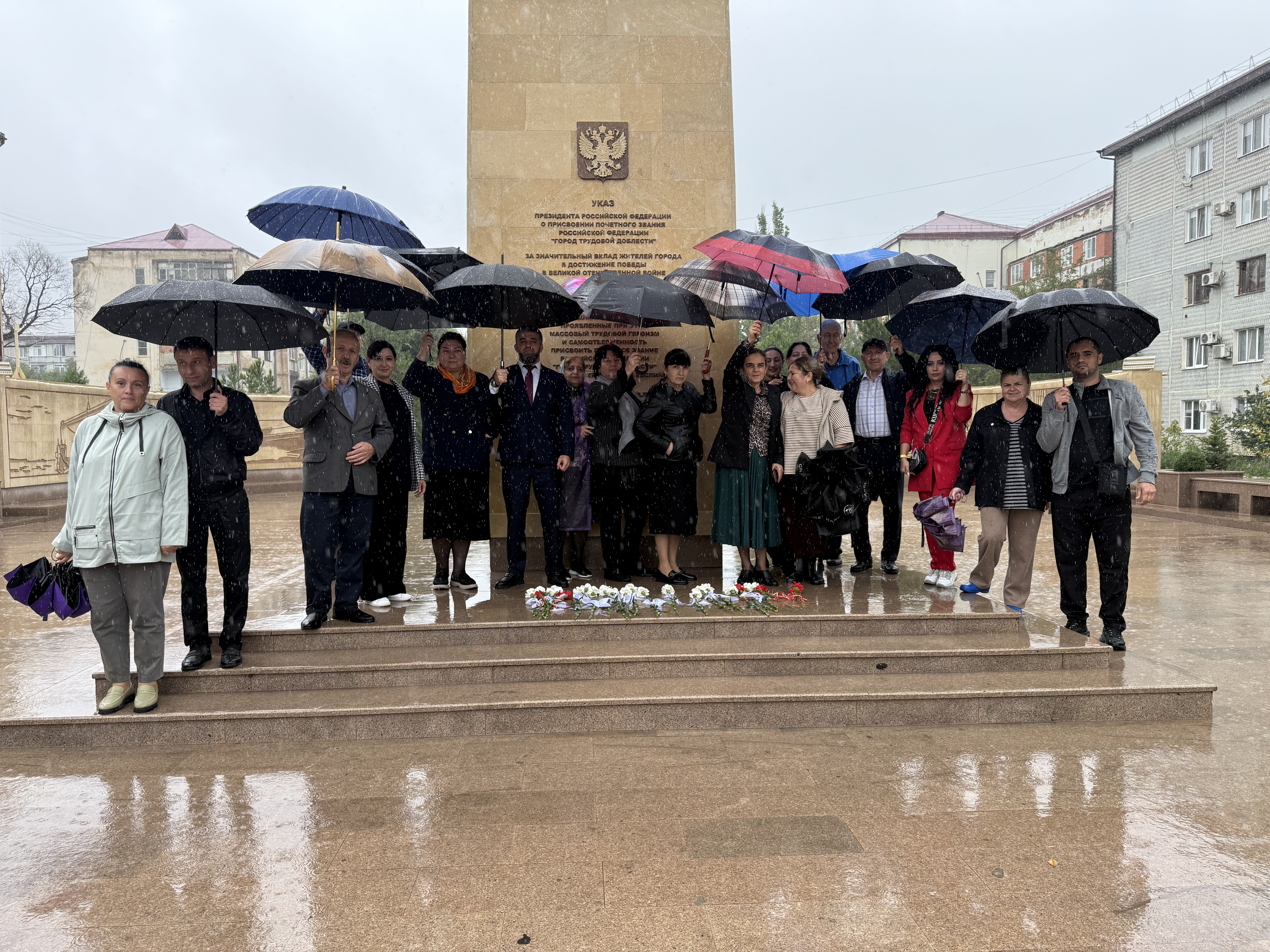 Сотрудники Дагдизеля возложили цветы к Стеле «Город трудовой доблести»