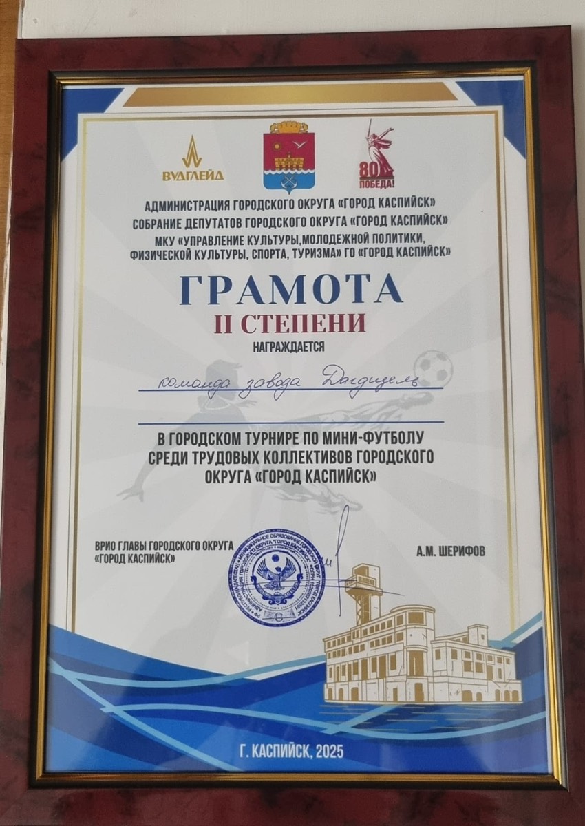 Команда предприятия продемонстрировала высокий уровень мастерства и волю к победе, заняв почетное второе место в соревнованиях на призы Главы города Каспийск Гонцова среди трудовых коллективов города.