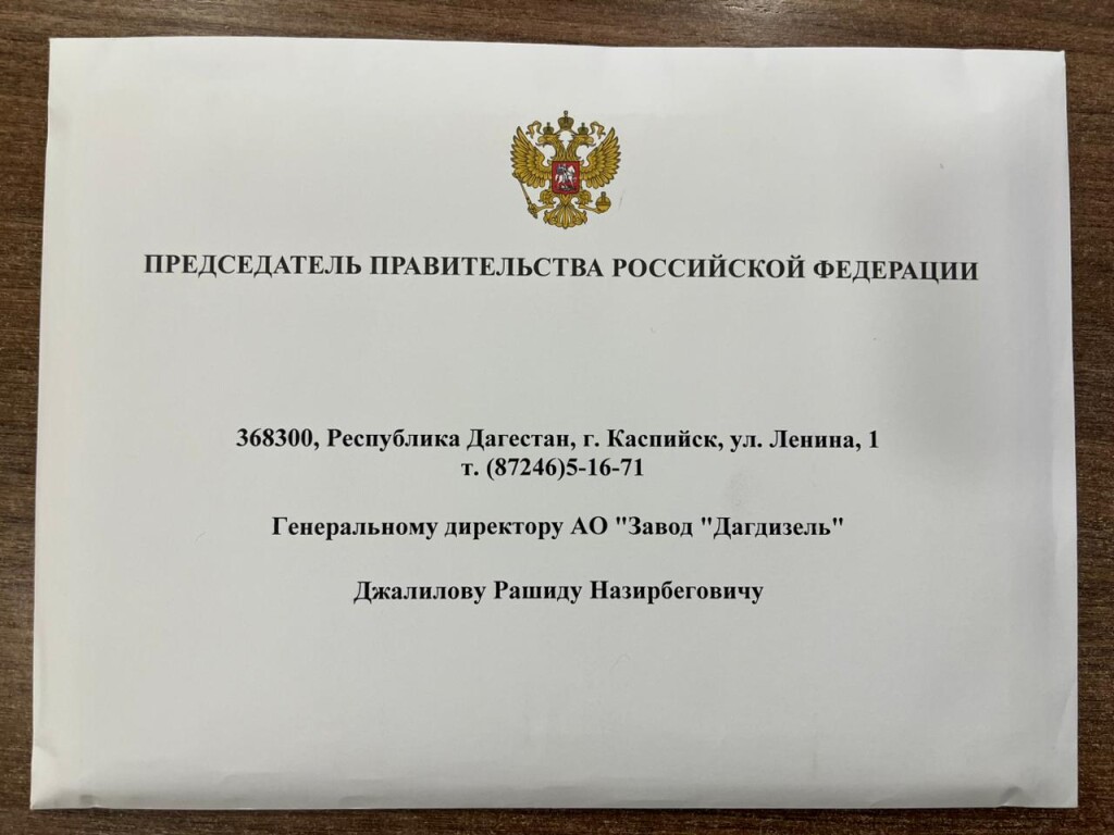 Глава Правительства выразил искреннюю признательность руководству завода и лично генеральному директору Рашиду Назирбеговичу Джалилову — в его лице всему коллективу Дагдизеля — за ответственный труд, высокий уровень организации производственных процессов и верность лучшим традициям отечественной промышленности.